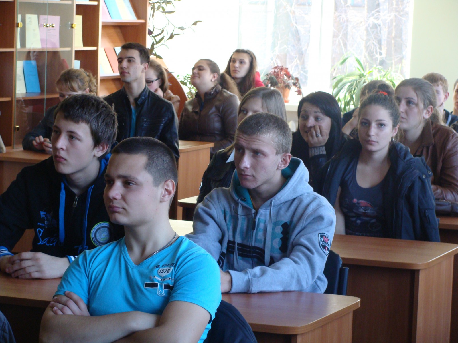 Practical psychologist Halyna Minchenko told students about the concept “life”, its uniqueness, value, significance for each individual, freshmen were urged to reflect on important life issues, attitude to their own lives and lives of other people as to the highest value. During the performance, psychologist proved the students necessity of cultivation in themselves of such feelings as kindness, honesty, hard working, responsibility, tolerance, love of people, of their native land. Participants were focused on the need of developing curiosity, interest in life, in the future profession, aspiration to find out, to prove, to imagne. She commented on the necessity of development the ability of forming valuable judgments about harmonious life; told about the life of a human-legend Nick Vuychych, about the testament for youth of Mother Teresa; gave practical advices how to bring up persistence in achieving life goals.