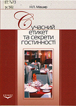 Машир Н.П. Сучасний етикет та секрети гостинності [Текст]: навч. посібник.- Київ: Кондор, 2010.- 213,[3] с. У посібнику простежується виникнення і сутність етикету. Велика увага надається етикету у сфері обслуговування, нормам та правилам поведінки за різних етикетних ситуацій. Книга розрахована на широке коло читачів. |