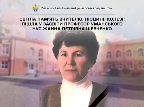 Світла пам'ять Вчителю, Людині, Колезі: Пішла у засвіти професор Уманського НУС Жанна Петрівна ШЕВЧЕНКО Жовтень 21, 2024 Світла пам'ять Вчителю, Людині, Колезі: Пішла у засвіти професор Уманського НУС Жанна Петрівна ШЕВЧЕНКО