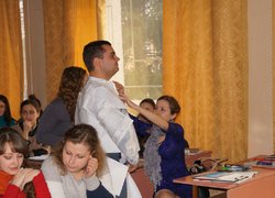 Як приклад застосування практичної підготовки, було проведено ділову гру у вигляді змагання між студентами денної та заочної форм навчання на тему «Соціально-психологічний портрет менеджера». Особливо цікавими були ситуаційні епізоди з ділового етикету.