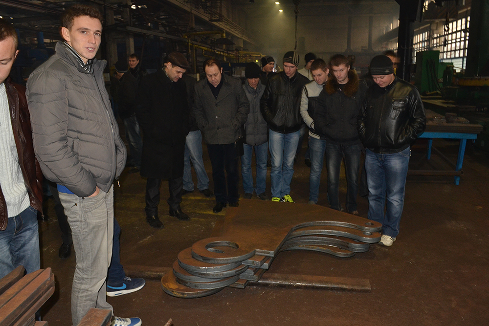 Після проходження інструктажу з охорони праці та техніки безпеки, головний технолог підприємства Сергій Трухін провів студентів і викладачів виробничими цехами, ознайомив із процесом виготовлення окремих деталей та збиранням і випробуванням готових виробів.