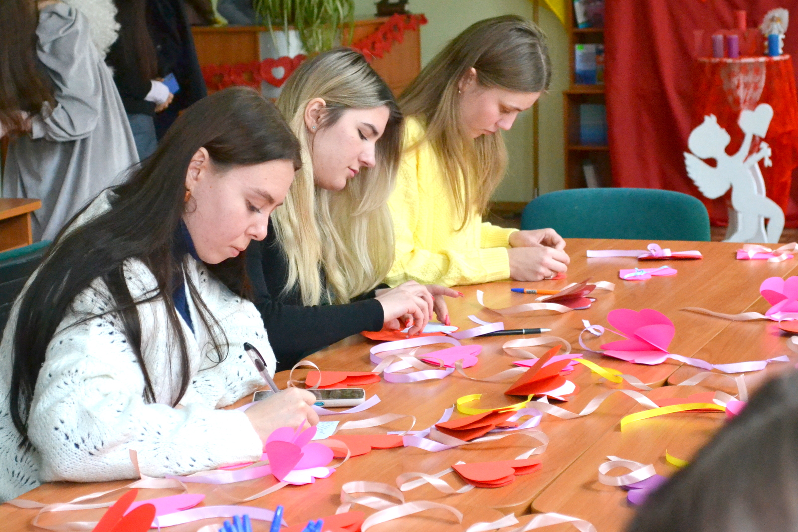 У День закоханих факультети університету підготували гостинці – прояв свого почуття для захисників України. А ще університяни писали листівки, адресуючи часточку любові на фронт, малювали по імбирному печиву квіти та серця. Протягом тривалого часу в аудиторію безперервно приходили люди з сувенірами, смаколиками та гостинцями для українських воїнів. Впевнені, що наші зізнання у любові до Ангелів-Охоронців в камуфляжі надихнуть їх, додадуть віри й обов’язково стануть оберегом. Адже щире серце палкою любов’ю і вірою у прекрасне творить дива, а ми з вами, шановні земляки, – сучасне світове диво.