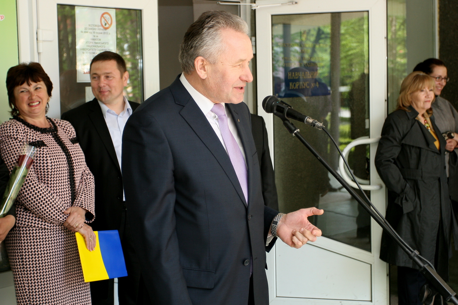 Схвильований гамір стих, коли ведучий свята заступник декана факультету, к.е.н, доцент Юрій Цимбалюк оголосив про початок урочистої миті. Державний гімн України як ніколи проникливо зазвучав з вуст як студентів, так і викладачів.