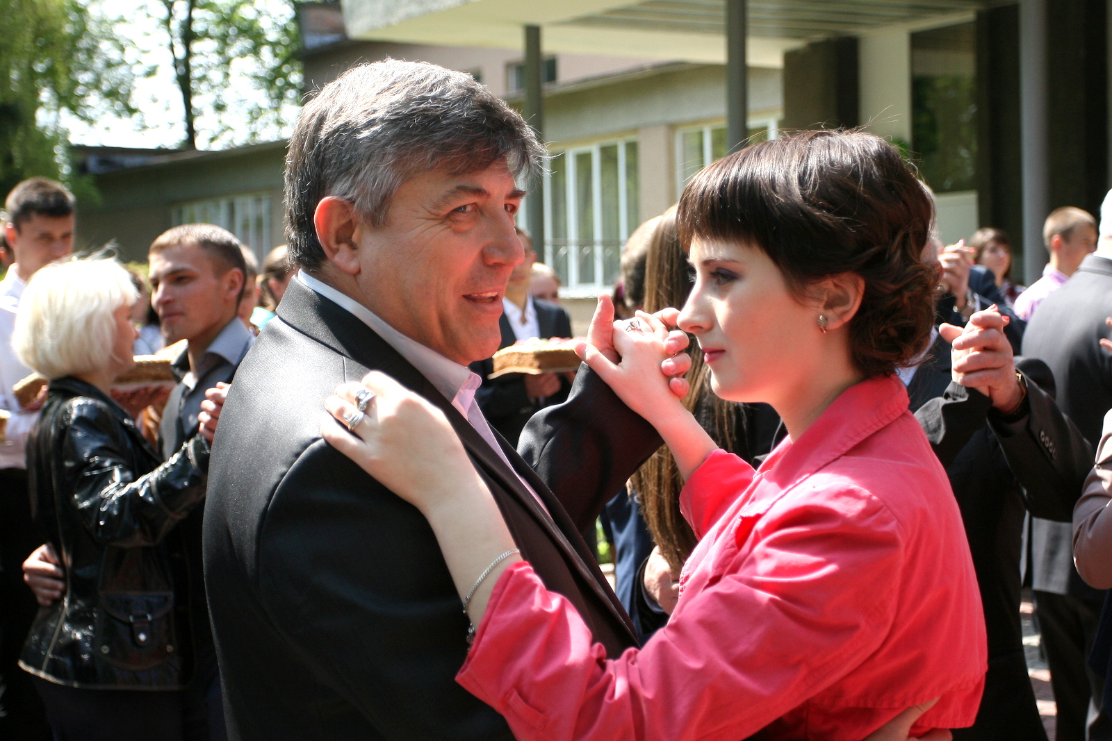Не оминула увагою винуватців свята й студентська молодь: першокурсники подарували їм солодкі подарунки, аби нове життя у старших друзів почалося з приємних спогадів і було приємним, пісню і запальний танець у форматі флешмобу.