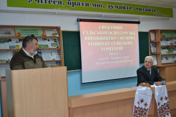 Із вітальним словом до учасників заходу звернувся директор фермерського господарства «Агрофірма «Базис» Володимир Осадчий – випускник Уманського сільськогосподарського інституту, успішний фермер, активний учасник художньої самодіяльності та спортивного життя регіону. У своїй доповіді «Ефективне сільськогосподарське виробництво – основа розвитку сільських територій» він детально розповів про умови й особливості діяльності сучасного фермерського господарства, переваги і недоліки в сучасних нормативно-правових умовах забезпечення діяльності підприємств. «Серед соціальних проектів, які реалізувалися за сприяння ФГ «АФ «Базис» – ремонт Будинку культури в с. Кочубіївка, будівництво стадіону в с. Городецьке, ремонт школи з добудовою спортзалу в с. Кочубіївка», – зазначив директор господарства.