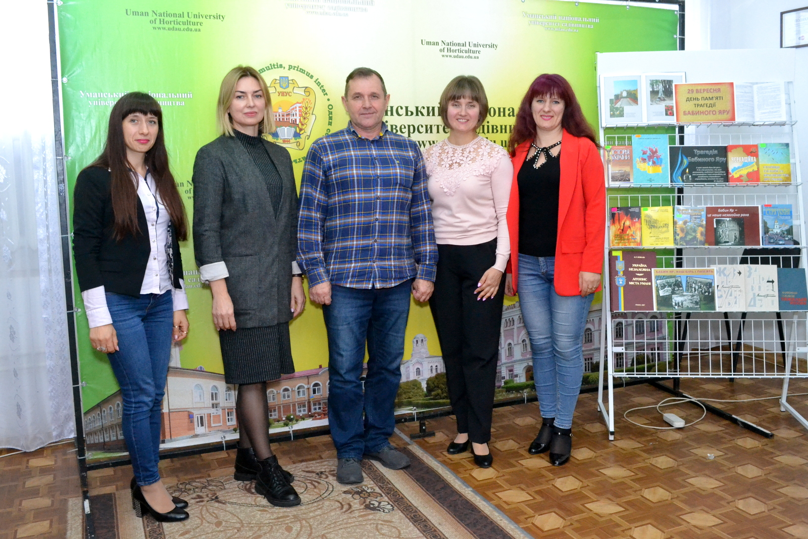 Наголосила на необхідності виховувати молодь у дусі історичної пам’яті і директорка бібліотеки Уманського НУС Тетяна КРАВЧЕНКО, яка також запросила студентів і викладачів відвідати тематичну виставку до Дня пам’яті жертв бабиного Яру, зорганізовану бібліотекарами університету.
