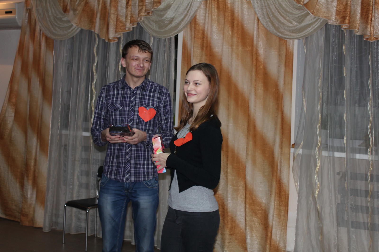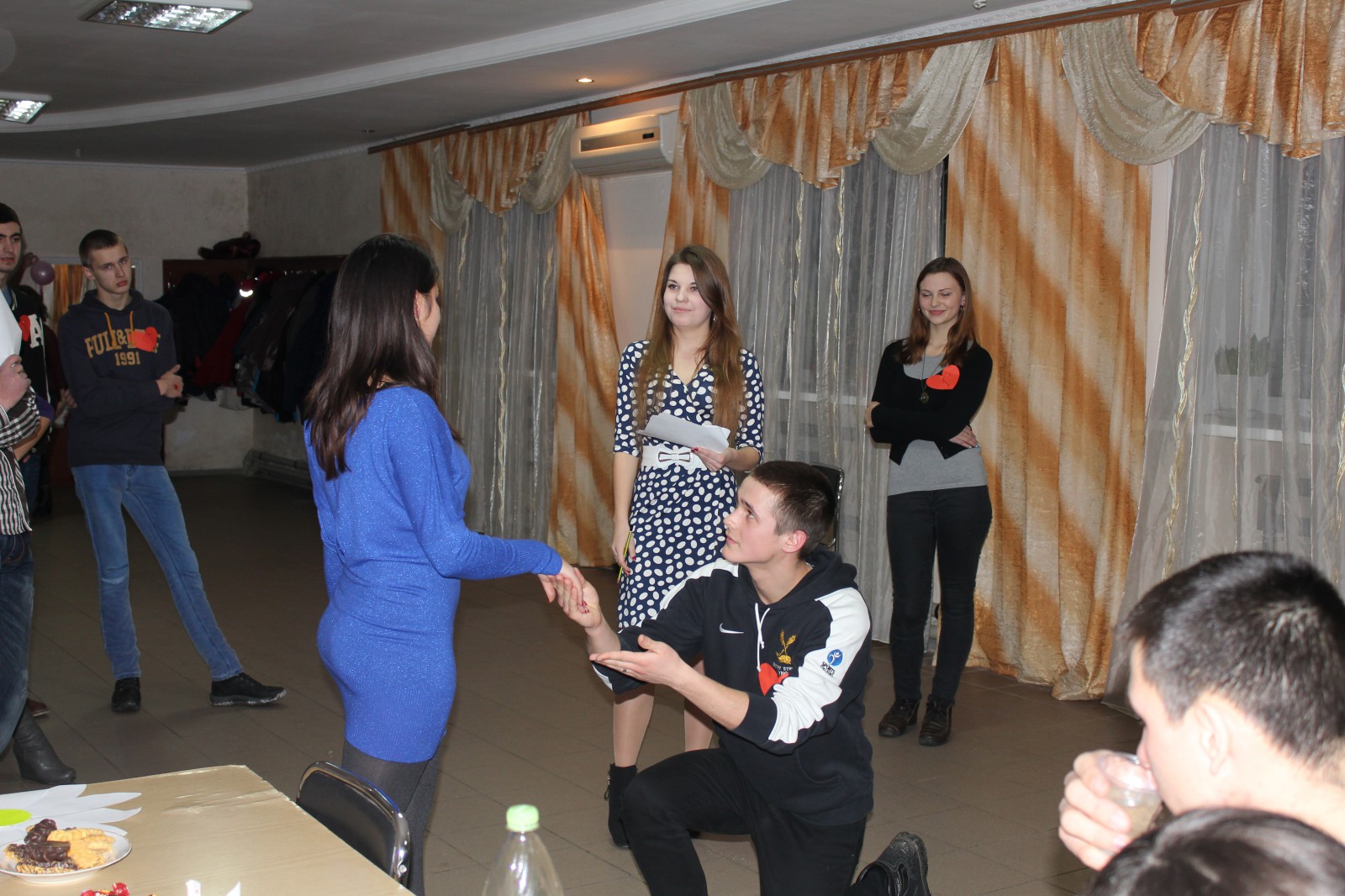 Ведучі свята вирішили об’єднати молодих і ще не закоханих людей у пари, влаштувавши для них спеціальні конкурси. Роль Валентина і Валентини виконували студенти 21-ек групи Владислав Довбнюк і 21-п групи Олена Шевченко.
