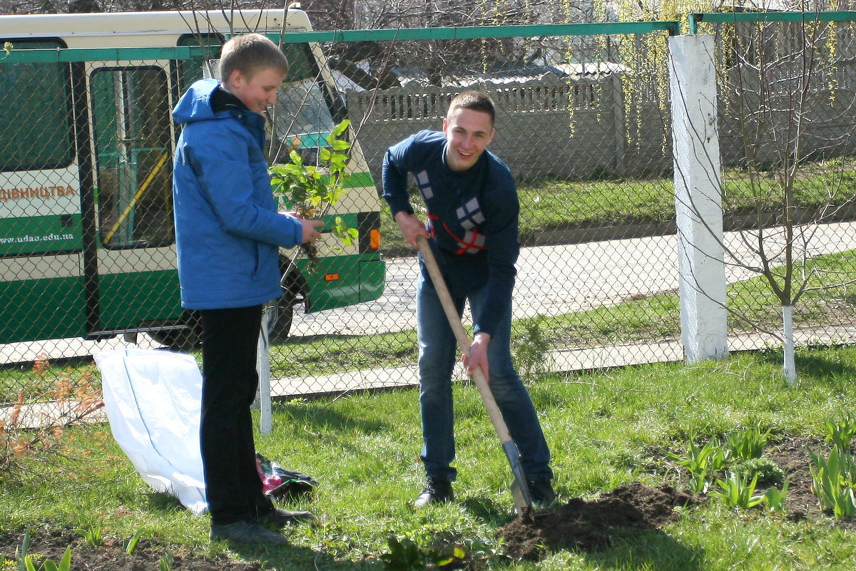 Початок квітня був вдалим для поєднання красивих і корисних справ, втілених в життя завдяки тісній співпраці викладачів Уманського національного університету садівництва та колективу ЗОШ І-ІІІ ступенів №3 м. Умань. 2 квітня колективи двох навчальних закладів поєднали два заходи: зелену декаду, що проходить у школі №3, та профорієнтаційну роботу. З великою відповідальністю до цього віднеслися співробітники університету: кандидат економічних наук, доцент кафедри економіки, заступник відповідального секретаря приймальної комісії Інна Чернега та кандидат біологічних наук, завідувач навчально-дослідної оранжереї і теплиць Володимир Вітенко, які сприяли озелененню школи та організували екскурсії по навчальному закладу. Для озеленення шкільного подвір’я від університету садівництва подаровані школі туї, сосонки, спарманія, мушмула японська, катальпа, лілії та піони деревовидні і трав’янисті. Господарі школи запросили гостей до своєї теплиці, створеної руками учнів та вчителів, яка вразила різноманіттям рослин та квітів. Було помітно, що педагогічний колектив піклується про екстер’єр школи та з любов’ю доглядає рослини в теплиці.
