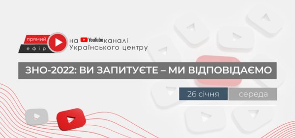 Даний ефір розпочне низку випусків «ЗНО–2022: ви запитуєте – ми відповідаємо» від команди Українського центру оцінювання якості освіти.