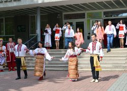 Ранок цього дня розпочався з творчих подарунків від Центру культури та виховання студентів. Зворушлива українська пісня у виконанні талановитої студентської молоді та флешмоб у вишитих сукнях і сорочках надихнув усіх на чарівний, продуктивний день. Витончені, життєрадісні та запальні студенти представили загалу бачення України-жінки – як музи для кожного українця, як натхнення для земляків у всіх країнах.
