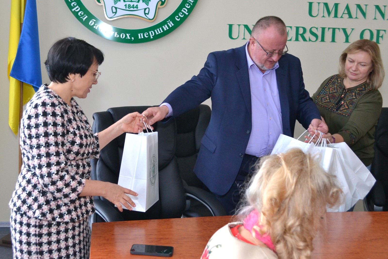 На згадку про зустріч гості отримали традиційні подарунки від колективу Уманського національного університету садівництва.