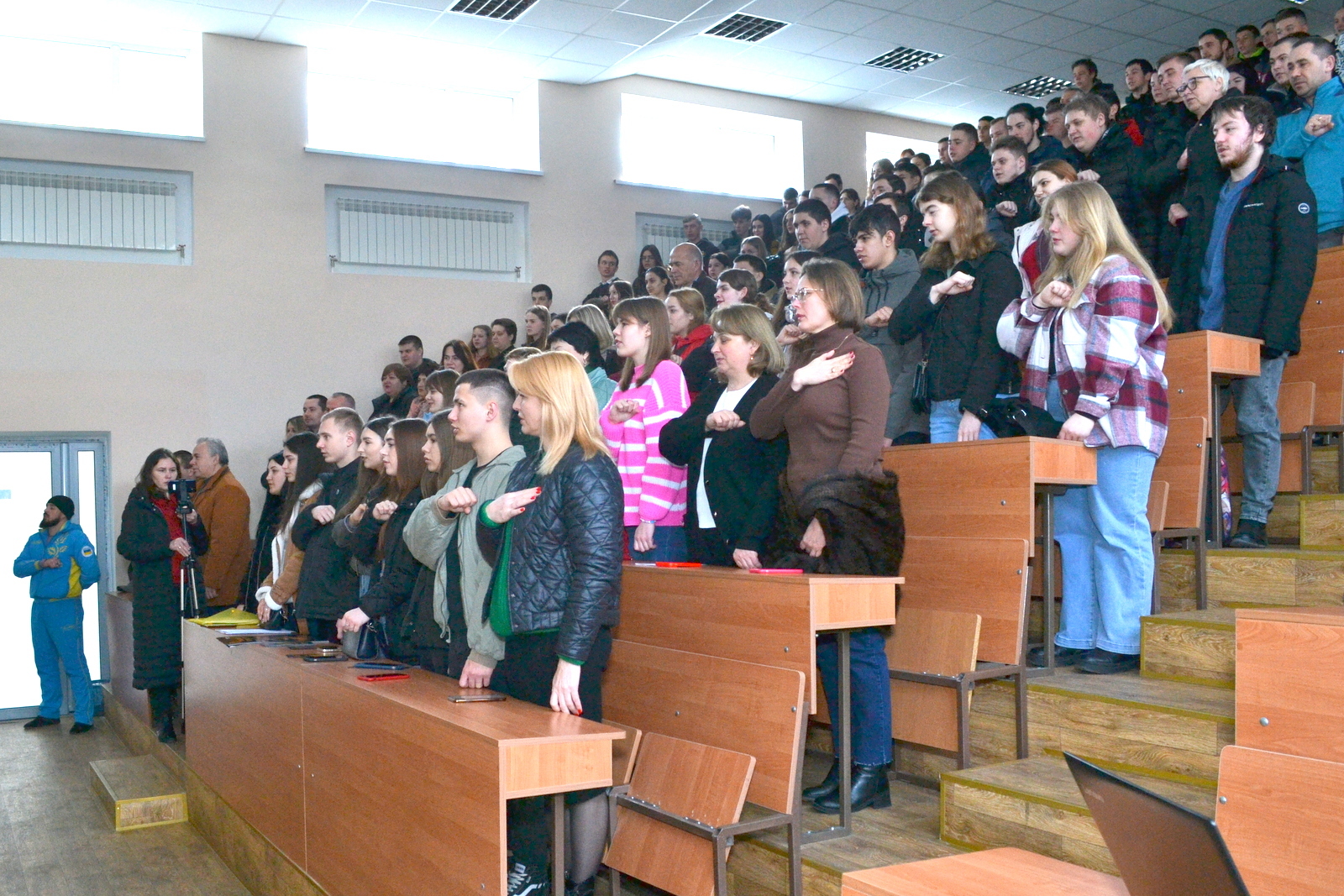 — Ми прийшли у військо, щоб захищати країну. Ви є наша нація, найкрутіша, найнереальніша, котра існує в світі. Ми хочемо, щоб кожен з вас почув наші слова: все, що зараз робить кожна людина, яка взяла зброю до рук і захищає країну, ми все це робимо заради вас, вашого майбутнього, — продовжив думку побратима та звернувся до здобувачів освіти Уманського НУС друг СТУДЕНТ. — Навчайтесь, бо сила насправді в знаннях. Не у великих м’язах, брутальному чи крутому вигляді. Тому поважайте своїх викладачів і батьків, гарно вчіться — це вам реально знадобиться, бо вам треба буде відбудовувати Україну.
