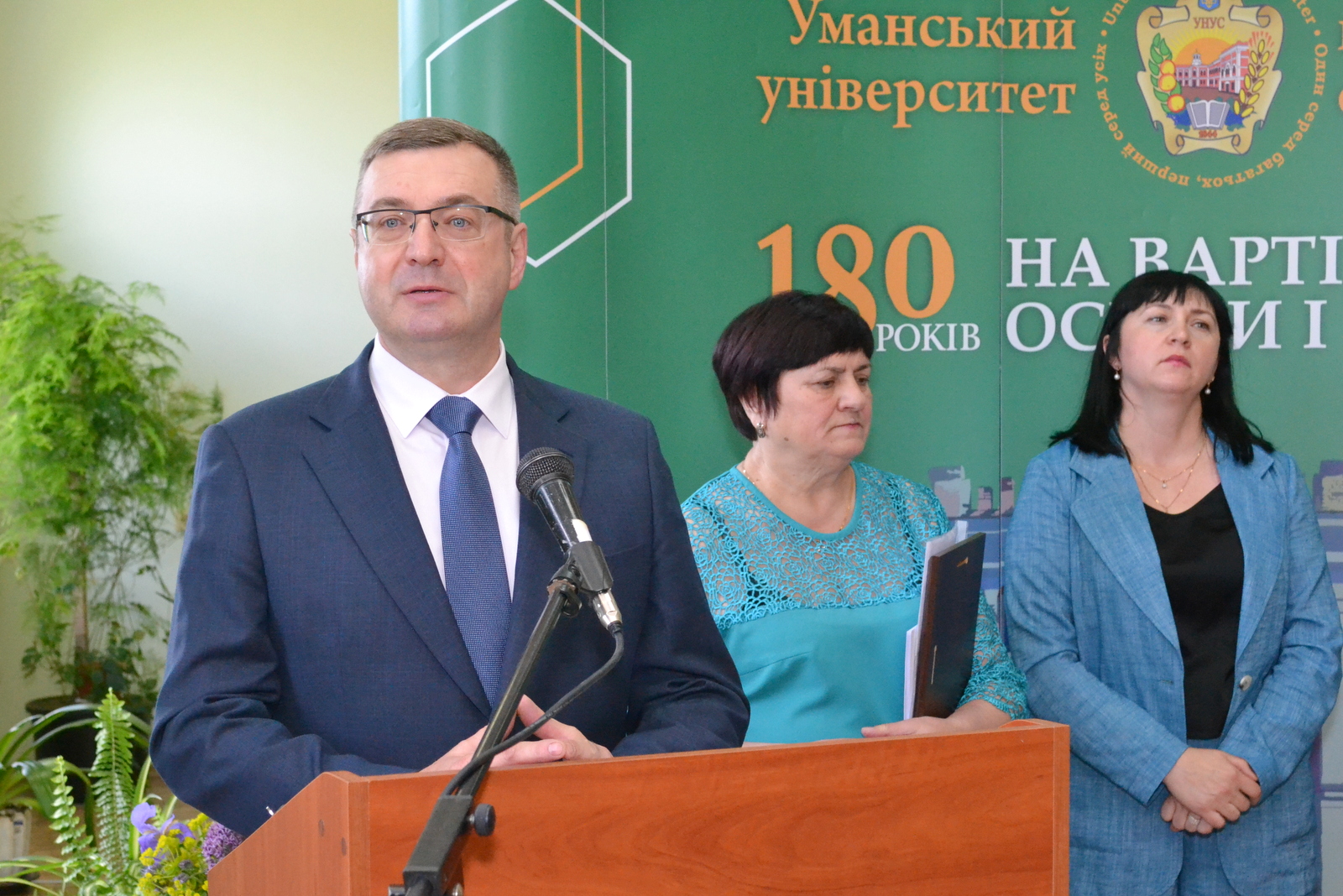 Голова Уманської районної ради Віталій ОЛІЙНИК привітав присутніх, подякувавши за наукові досягнення та за вміння виховувати не лише професіоналів своєї справи, а й людей, які назавжди у серці носять Альма-матір, бо і він, випускник Уманського НУС, досі з теплом у серці згадує рідний осередок науки і знань. А «За вагомі професійні досягнення, активну участь у підготовці наукових та науково-педагогічних кадрів, бездоганну працю та з нагоди Дня науки Почесною грамотою Уманської районної ради» нагороджені: