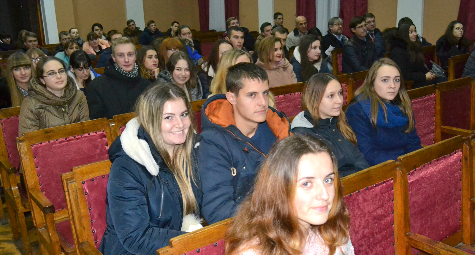 Привітала всіх із Днем студента та нагородила подяками та грамотами найактивніших членів студентського самоврядування, а також переможця конкурсу художників, яких проходив в університеті голова ради студентського самоврядування УНУС Вікторія Уманчик.