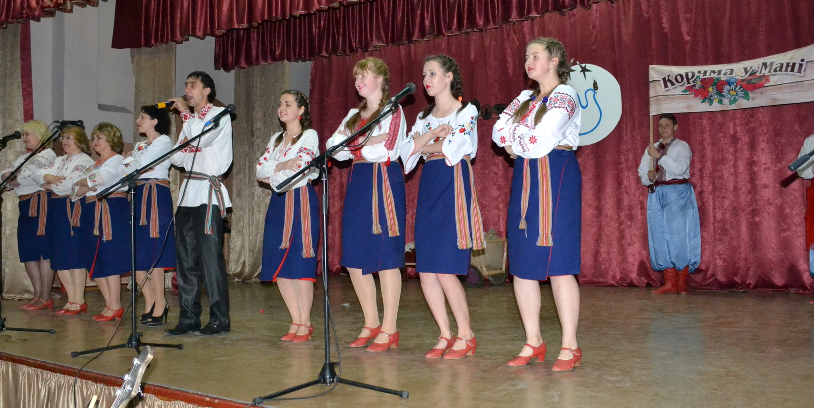 Народний ансамбль пісні і танцю профспілок України «Хлібодари» та народний вокальний жіночий ансамбль «Криниченька» Уманського НУС, захопливо виконали вокальну композицію жартівливого змісту: «…Ой сяду вишию сорочку, на білому струмочку лляного полотна», – співали учасниці, ритмічно пританцьовуючи, запалювали глядацький зал.