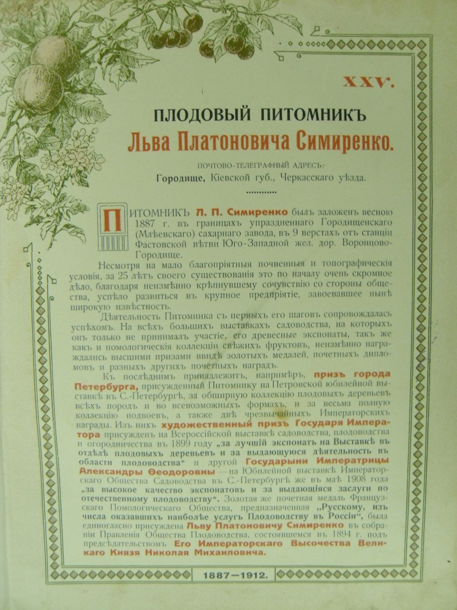 Рекламний проспект помологічного розсадника Л.П.Симиренка того часу багато може розповісти сучасному читачеві.