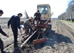 26 студентів садили яблуні механічно, під плуг МПС–1, який висаджує 1 рядок.