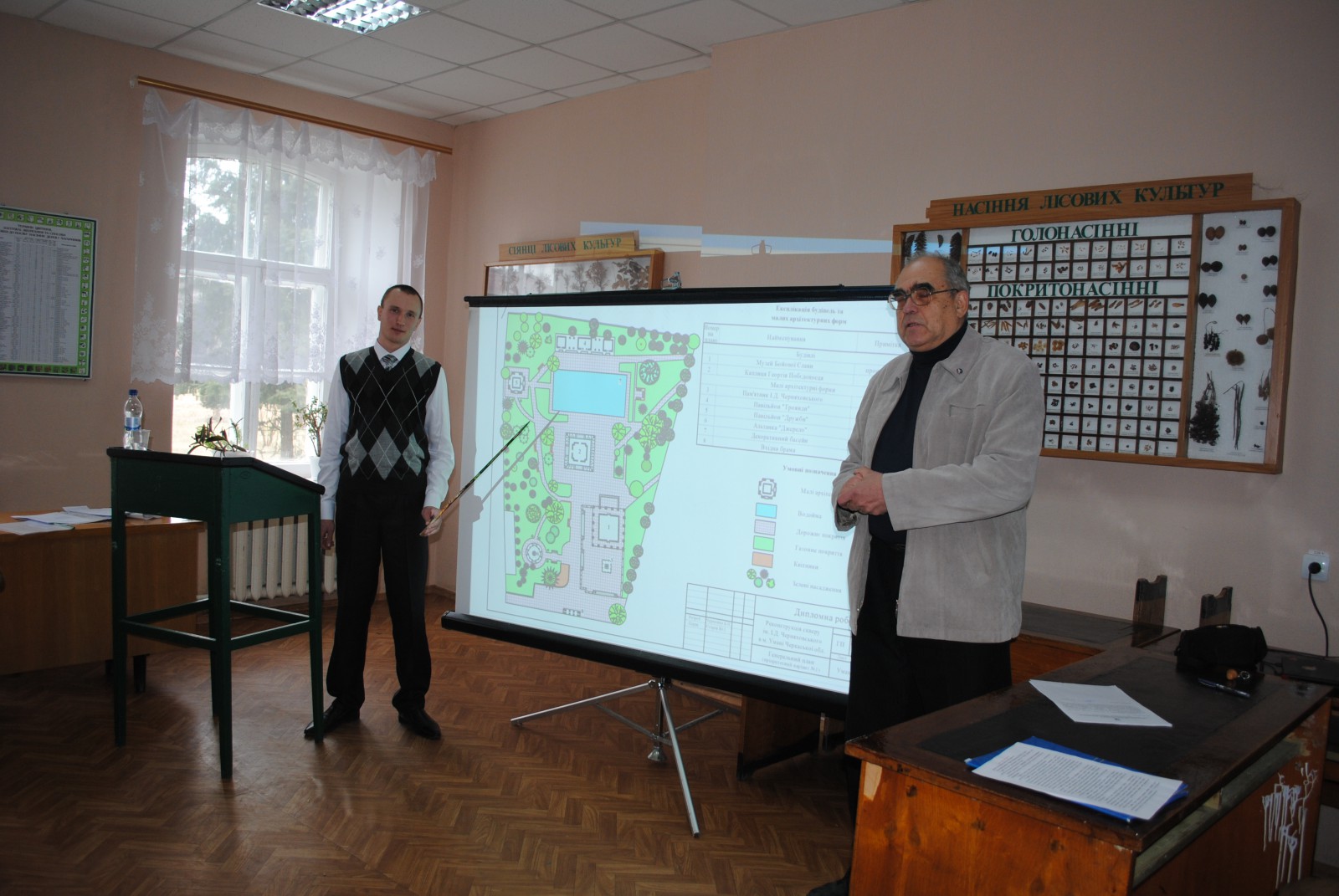 Голова ЕК, академік Лісівничої академії наук України, старший науковий співробітник НУБіП України, професор кафедри лісовідновлення та лісорозведення, доктор с.-г. наук Ярослав Дмитрович Фучило виступив і схвалив представлені проектні пропозиції та відмітив, що вони є актуальними, реальними та мають наукову новизну, а володіння теоретичним і практичним матеріалом, який отримали студенти протягом навчання на кафедрі садово-паркового господарства в Уманському національному університеті садівництва, підтверджують їх кваліфікаційний рівень. Деякі роботи впроваджено у виробництво, на дослідних територіях дипломники особисто провели озеленення. Студенти зарекомендували себе як висококваліфіковані спеціалісти в галузі ландшафтного дизайну та архітектури.