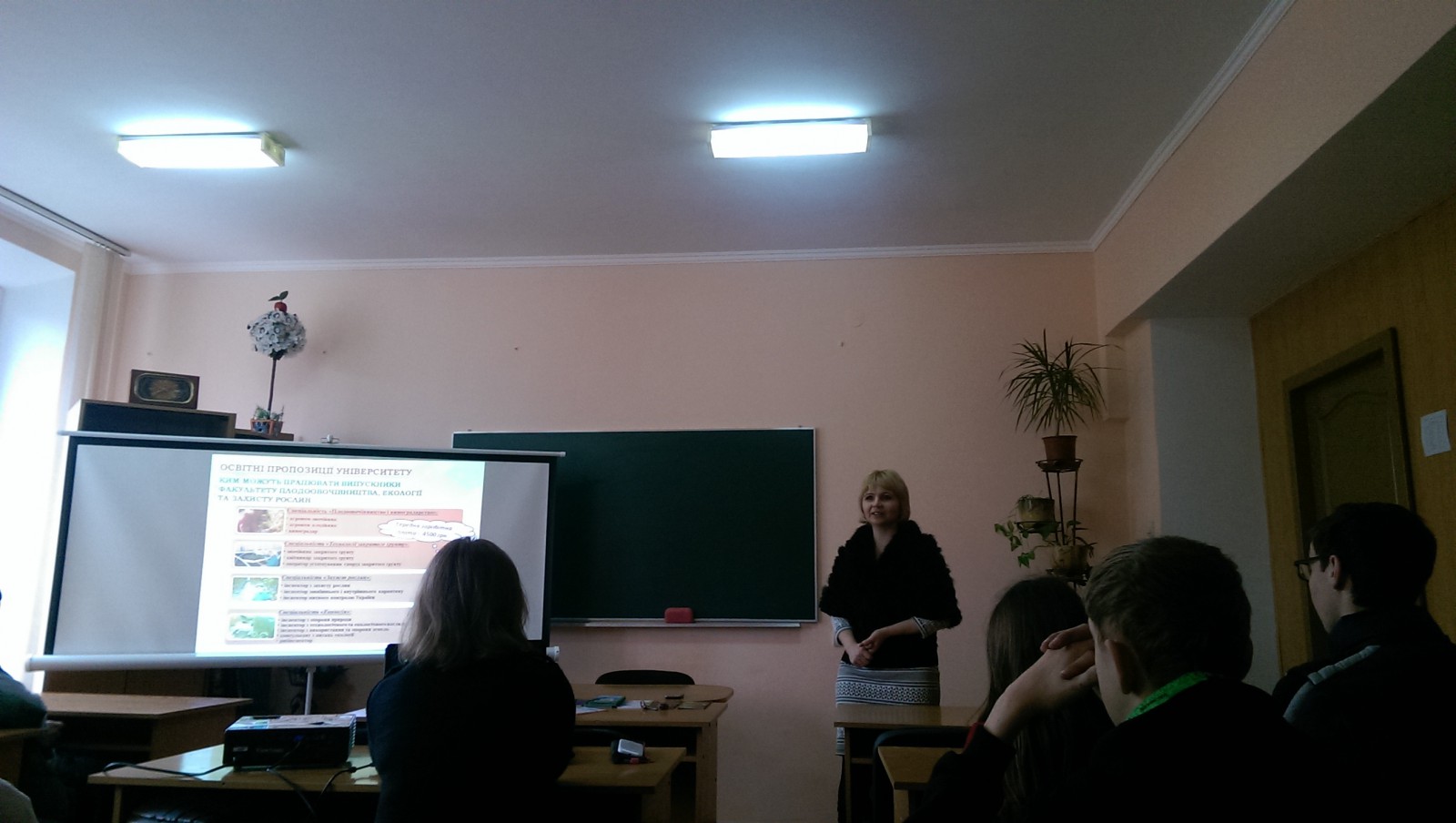 На початку зустрічі завідувач відділу довузівської підготовки та профорієнтаційної роботи Інна Чернега представила презентацію про Уманський національний університет садівництва, надала інформацію про напрями підготовки та спеціальності, звернула увагу на правильний вибір майбутньої професії та можливість подальшого працевлаштування.