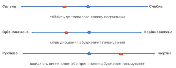 Нервова система може бути врівноважена чи неврівноважена. Мова йде про співвідношення збудження та гальмування нервових процесів. Наприклад, є людина, як миттєво «спалахує», тобто швидко починає роботу і її буває досить складно пригальмувати.