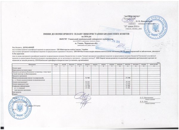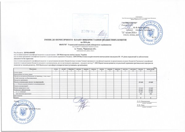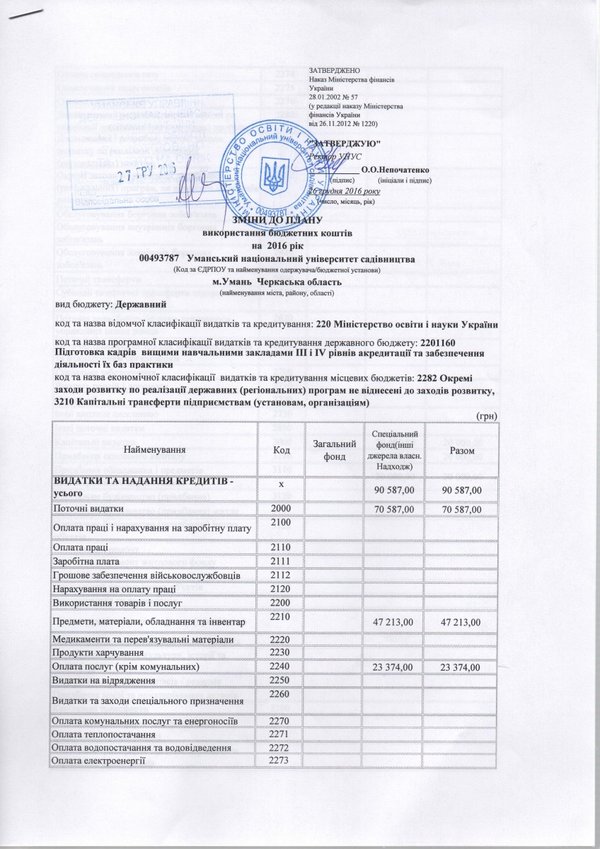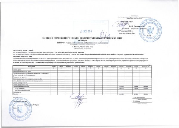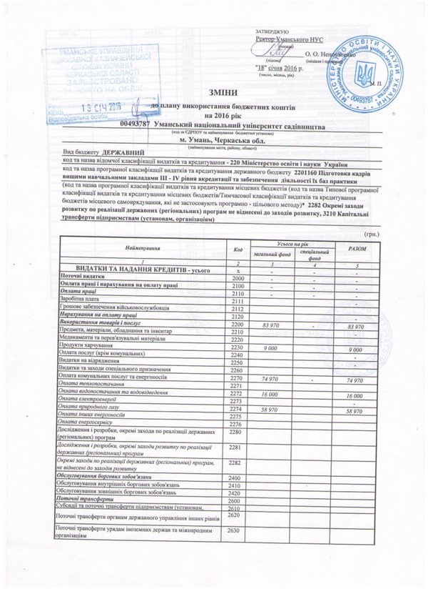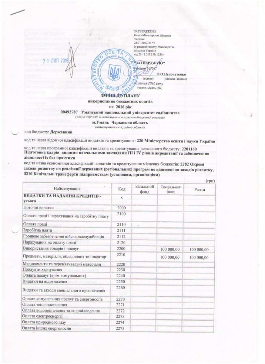 Зміни до плану використання бюджетних коштів на 2016 рік
